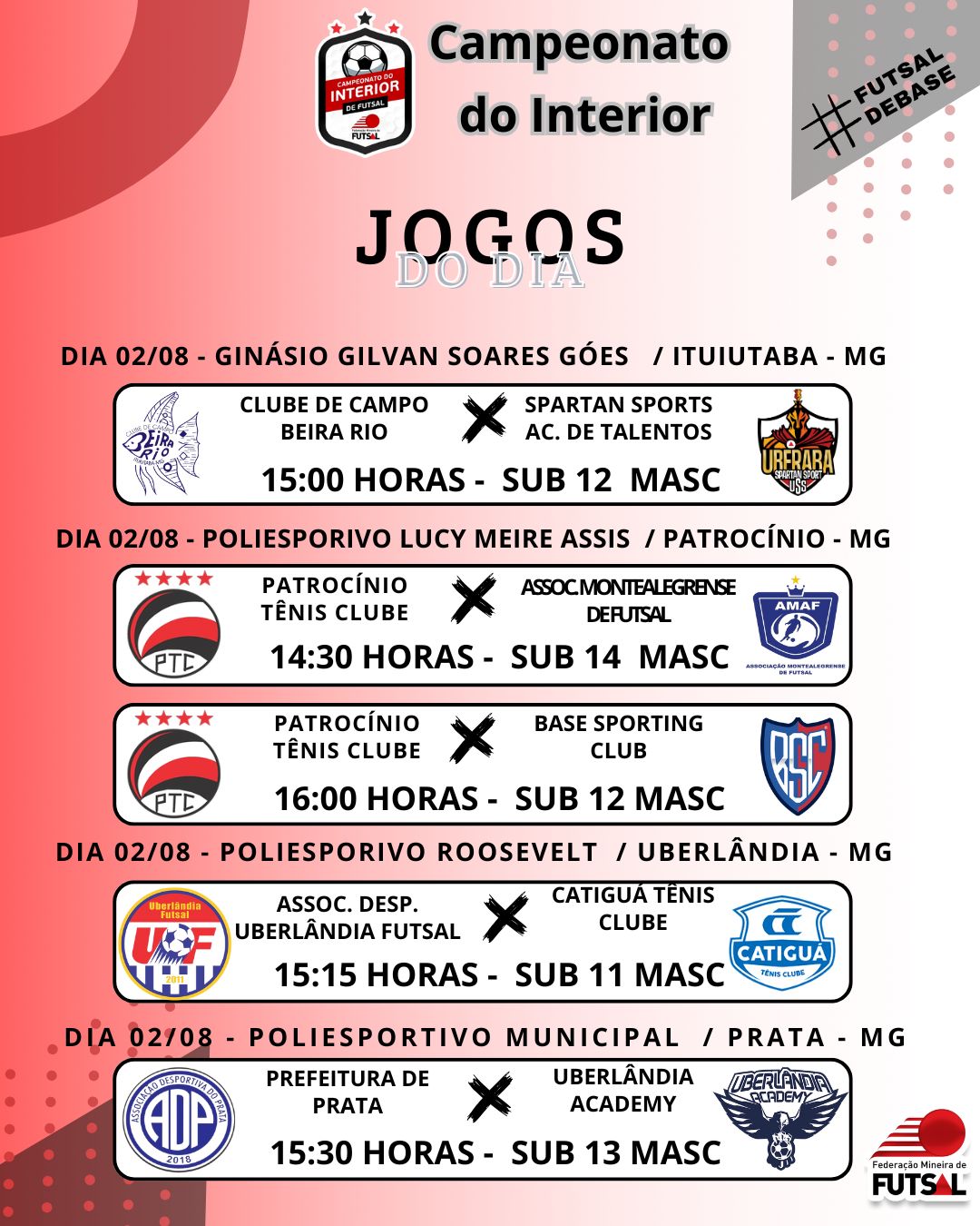 JOGOS DE HOJE, PELO CAMPEONATO DO INTERIOR – SUB 12, SUB 14, SUB 11 E SUB 13 – MASCULINO.
