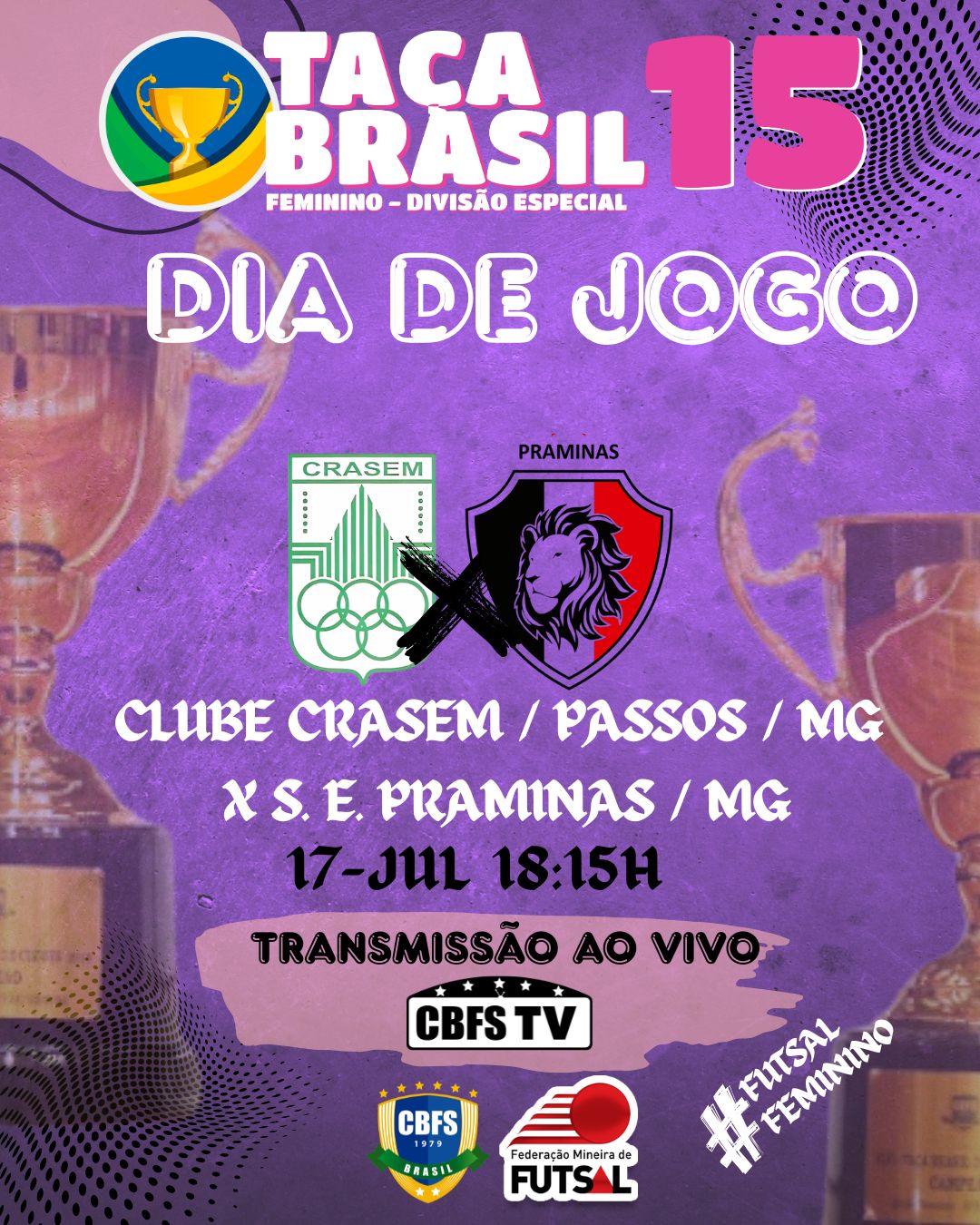⚽️ Daqui a pouco, às 18h15, em Passos-MG, o Crasem x S. E. Praminas se enfrentam, pela terceira rodada da Taça Brasil de Clubes Sub 15 – Divisão Especial – Feminino.