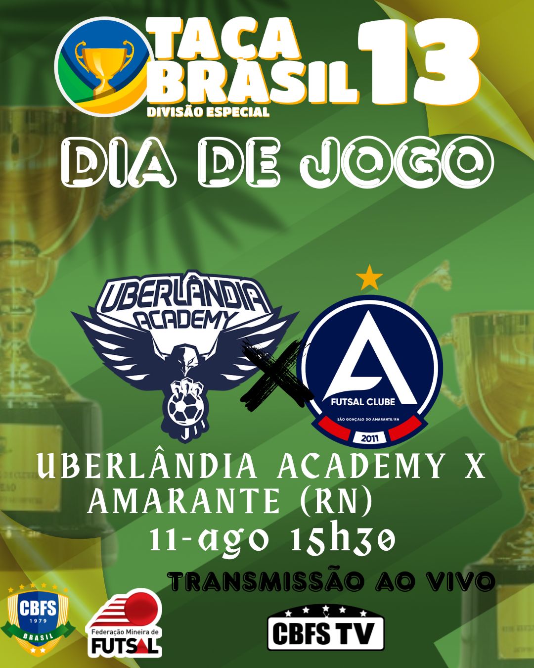 ⚽️ Daqui a pouco às 15h30, em Goiania (GO), o Uberlândia Academy entra em quadra, pela Taça Brasil de Clubes Sub 13 – Divisão Especial – Masculino, onde enfrenta a Amarante (RN).